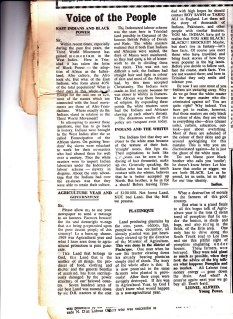 | Annonymous letter in the 1970 Vanguard Newspaper. |