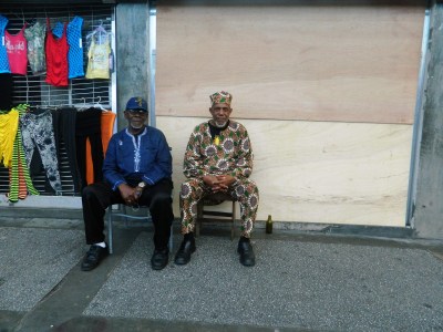 Friends. Relatives. Similar aesthetics. African aesthetics. Simple beauty. Clothing with intricate details. Not full regalia, but full of pride. Duke Street, Port of Spain, Trinidad.
